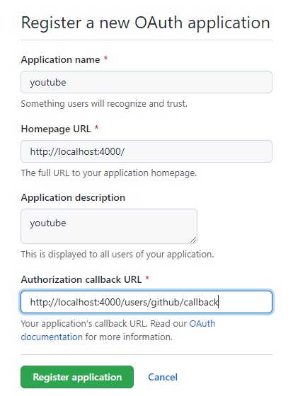 github -> settings > developer settings > OAuth APPS >Register a new OAuth application >