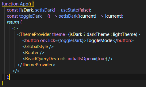 <Router toggleDark={toggleDark} /> //but, Router에서 받을 준비가 안됨 interface설정