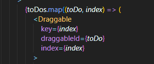 <DraggableCard key={toDo} index={index} toDo={toDo} />