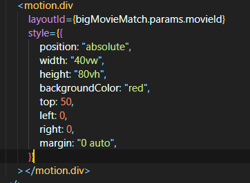{bigMovieMatch ? ( useMatch("/movies/:id")이 주소가 맞으면 모달창을 띄어라