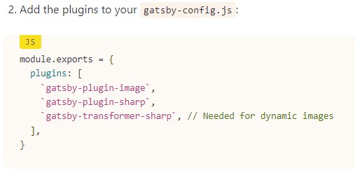 npm install gatsby-plugin-image gatsby-plugin-sharp gatsby-source-filesystem gatsby-transformer-sharp